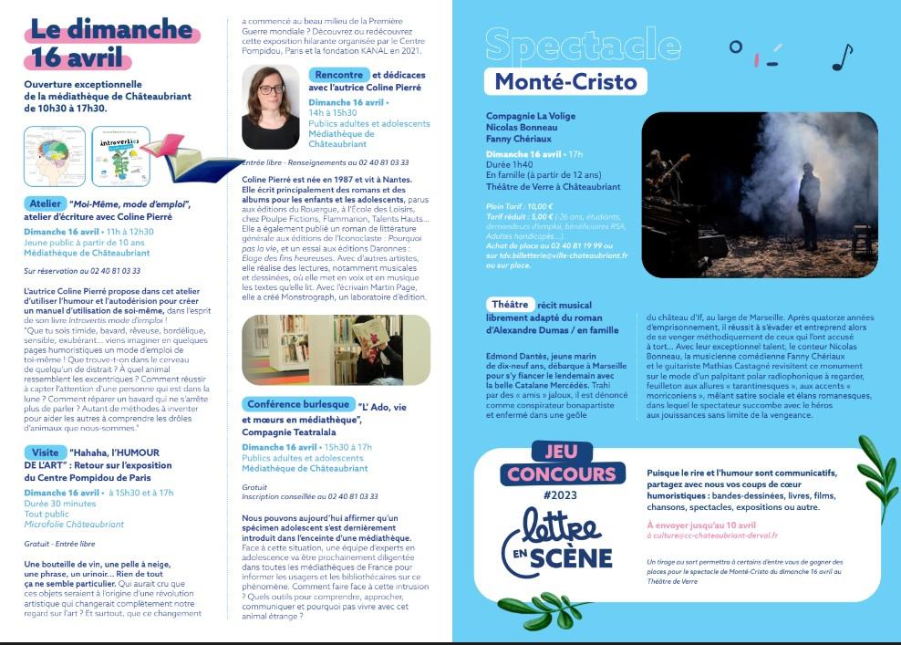 Le festival Lettre en Scène aura lieu à Châteaubriant durant le week-end du 14, 15 et 16 avril 2023, voici le programme de cet événement totalement gratuit.