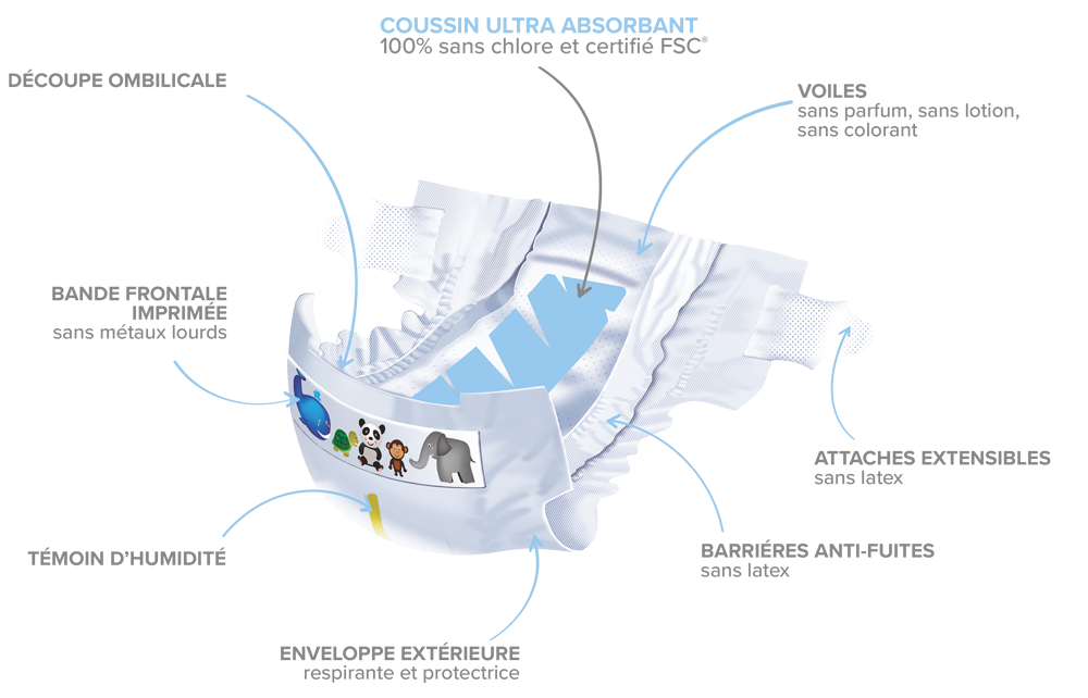 Pour l'Oisillon, nous avons acheté 5 kits couches lavables de la marque Hamac pour les journées.