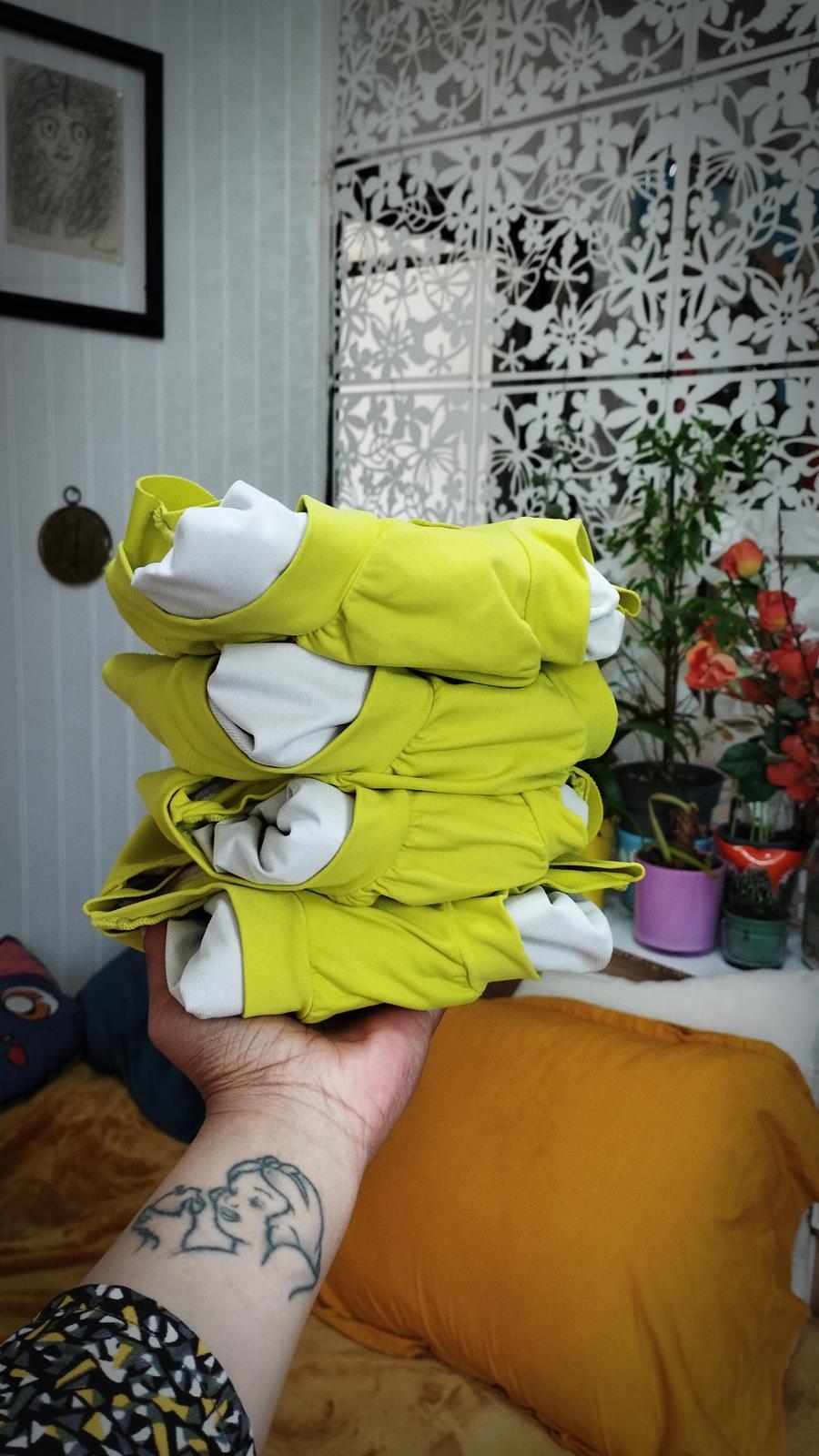 Petit bémol, les inserts font certes leur boulot, mais sont trop épaisses à notre goût, car elles sont en 3 plis par conséquent, nous utilisons des inserts lavables à un pli que nous avons acheté en occasion à 5€ les 50 et qui font tout aussi bien le travail.