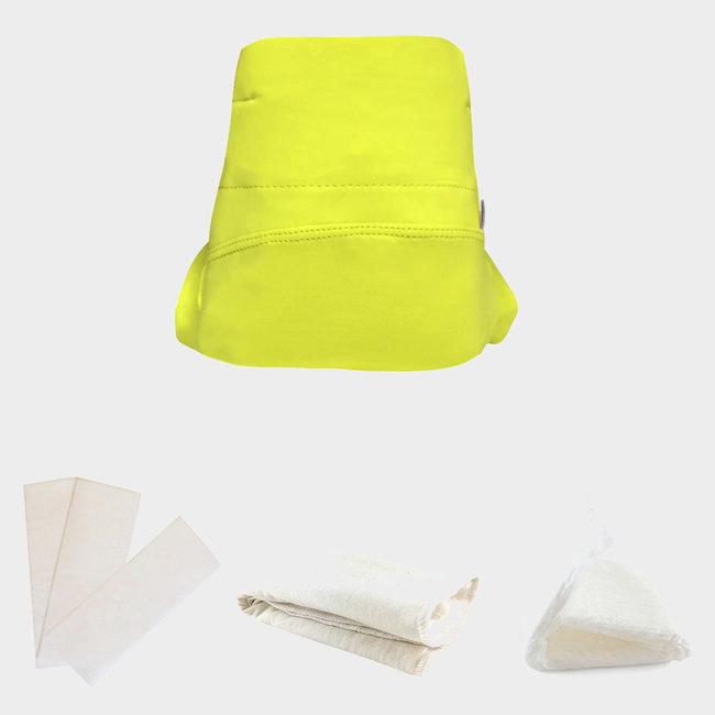 Les packs sont constitués de 1 couche classique Hamac de coloris Green Banana, 1 absorbant en coton biologique, 1 absorbant jetable en cellulose et 3 voiles jetables soit tout ce qu'il faut pour débuter.